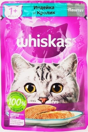 Корм для кошек "Вискас" ЖЕЛЕ Кролик/индейка 75гр.28шт 6шт
